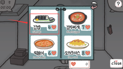 3、选择红框标注的紫菜包饭,花费4个爱心购买。