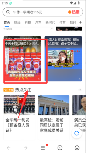 1、打开360浏览器app后,在首页下滑即可浏览推荐的头条新闻和热门视频,内容自动更新不用手动搜索。