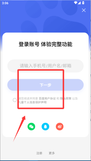 1、下载并安装百度极速版app,打开后完成简单的账号注册或直接以游客身份使用。
