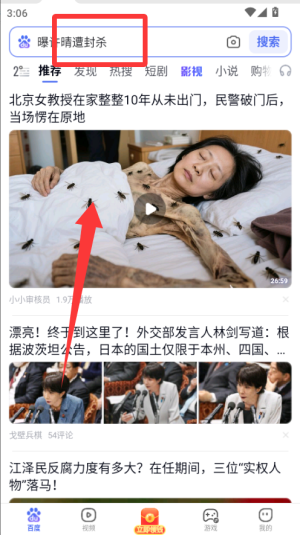 2、在顶部的搜索框输入关键词,点击搜索按钮即可快速获取网页、新闻或百科等内容。