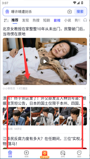 3、浏览首页推荐的信息流,上下滑动查看新闻热点、娱乐动态或你感兴趣的其他资讯。